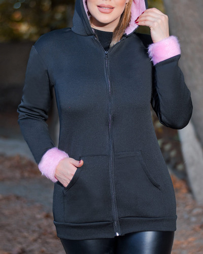 سویشرت زنانه کلاه خز ARZHAN(صورتی)