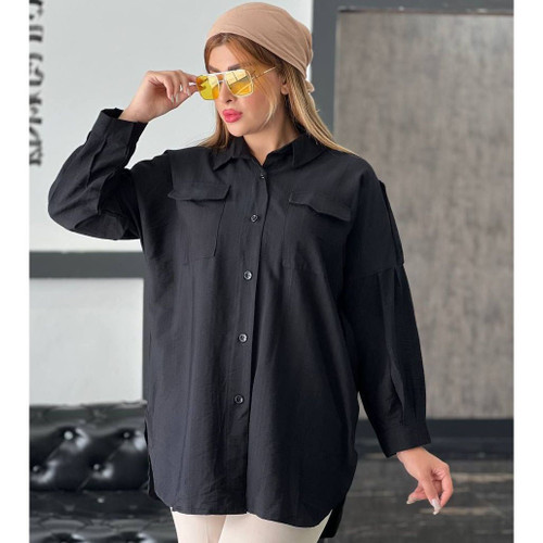 بلوز مشکی زنانه لنین فری سایز کد 8158