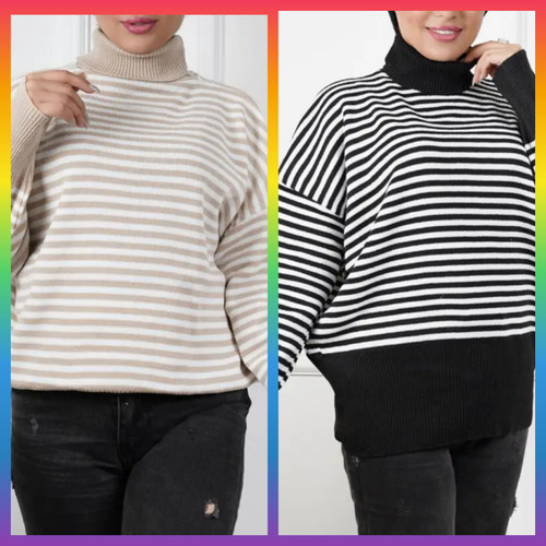 بلوز بافت یقه اسکی راهراه زنانه کد 7777 Mehr
