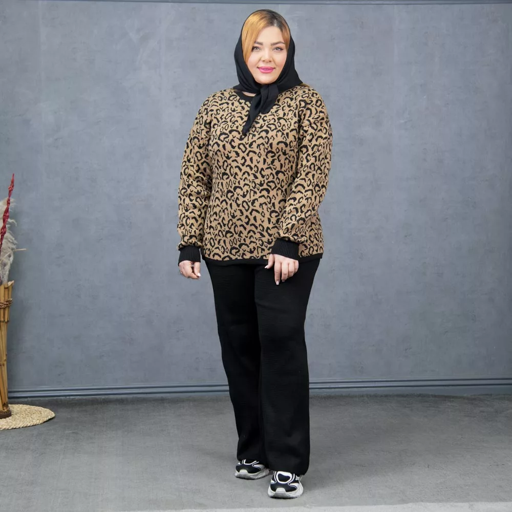 ست باکسی پلیور و شلوار دخترانه پلنگی کد 27939