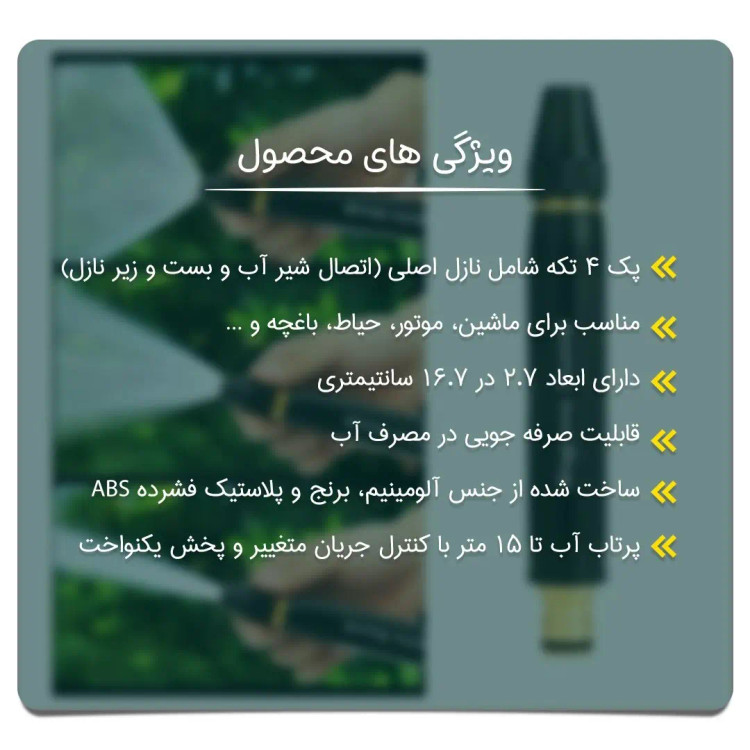 سایر توضیحات : این محصول دارای تنظیم درجه پاشش آب میباشد که با چرخاندن سر کارواش میتوان در حالتهای مختلف از این محصول استفاده کرد .
