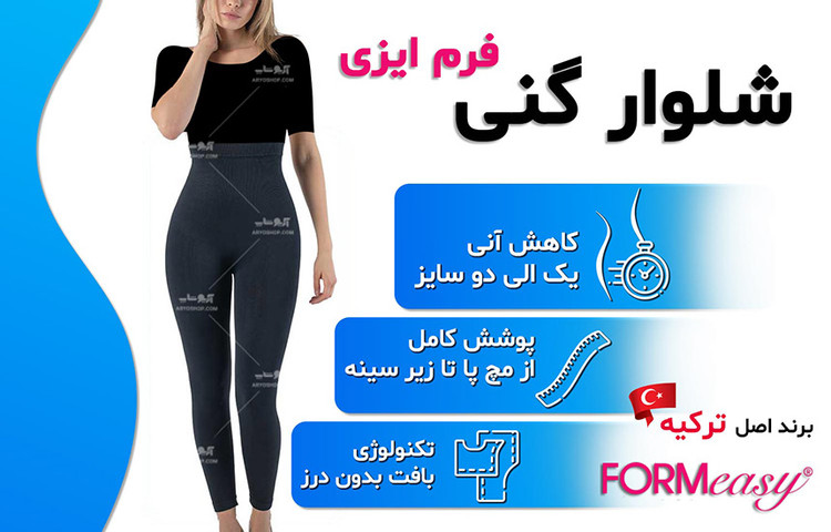 - لگ یا شلوار گنی مارک برند فورمیسی (فرم ایزی) کد 2400 Formeasy محصولی ساخت کشور ترکیه با جنس عالی و موجود در رنگ مشکی در سایزهای مختلف می باشد که از قدیم مشتریان بسیاری دارد و یکی از برندهای معروف و شناخته شده انواع گن های زنانه می باشد ، این محصول به صورت بلند و یکسره تقریبا از زیر سینه شکم و پهلوهای شما را پوشش داده و باسن را خوش فرم می کند و همچنین ران و ساق پای شما را نیز فرم دهی می کند و در عین حال هیچ حس اذیت ، خارش ، حساسیت و موارد مشابه برای شما ندارد ، شلوار های گنی همیشه طرفداران خود را دارند و شما می توانید آن ها را حتی زیر مانتو به عنوان شلوار عادی برای بیرون نیز استفاده نمایید که بستگی به نظر و سلیقه شما دارد