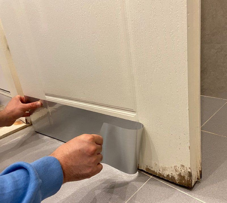 فویل را از کاغذ چسب دار جدا کنید همچنین توصیه میشود که هنگتم نصب فویل روی درب از یک کاردک کمک بگیرید