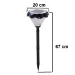 چراغ سولار حیاطی و باغی با رنگ نور مهتابی طرحدار که بخاطر حالت بدنه و شیشه آن طرح زیبایی را در روی زمین روشن میکند. در قسمت بالایی محصول یک پنل خورشیدی قرار دارد که در طول روز نور خورشید را جذب نموده و از طریق آن باتری داخلی خود را شارژ می نماید. در هنگام شب سنسور حساس به تاریکی روشن شده و چراغ باغچه ای شروع به نورافشانی می کند.