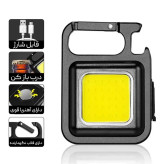 - چراغ قوه مگنتی مینی چندکاره COB مدل LED KEYCHAIN LIGHT یک محصول کوچک و جمع و جور است که به راحتی در جیب جا می شود. این چراغ قوه مفید خواهد بود در سفر، کمپینگ، محل کار، هنگام تعمیرات، در محیطهای باز و هر جایی که نیازمند روشنایی باشید. از چراغ قوه مگنتی می توانید به عنوان جاسوئیچی استفاده کرده و یا آن را به کیفتان وصل کنید. آهنربای پشت آن به راحتی به سطوح فلزی می چسبد. پایه نگهدارنده آن سبب می شود تا به راحتی بر روی سطوح صاف قرار گیرد. با فشردن دکمه خاموش و روشن آن می توان نور با شدت ضعیف، نور زیاد و حالت چشمک زن را دریافت و تنظیم نمود. این محصول دارای یک عدد لامپ COB با توان 6 وات است.
