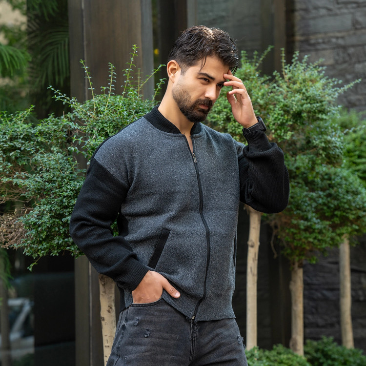 سوییشرت بافت طوسی مردانه مدل Melvi