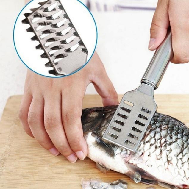 پولک گیر ماهی استیل یک ابزار ساده اما بسیار کاربردی می باشد که با استفاده از آن می توان براحتی آب خوردن ماهی را پولک گرفته و تمیز کرد تا براحتی و بدون دردسر آماده پخت شود، این فلس گیر ماهی دارای جنس استیل با دسته مناسب برای استفاده دستی می باشد که دارای دندانه هایی در دو طرف بوده و به آسانی با کشیدن آن بر روی پوست ماهی پولک آن را جدا کرده و می توان برداشت و نیازی به فشار زیاد فلس گیر نمی باشد.
