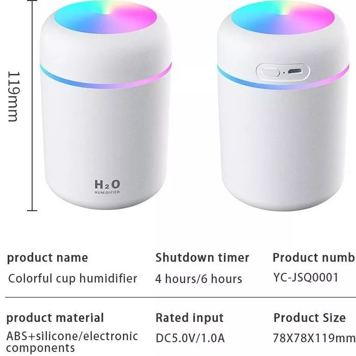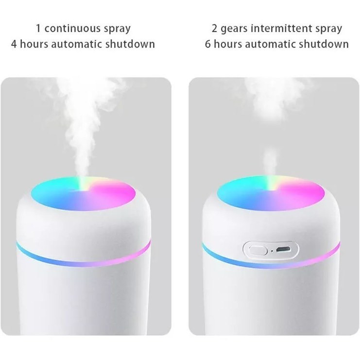 عملکرد دستگاه: یک بار فشار دادن دکمه: روشن شدن بخور سرد به صورت پیوسته ،دوباره فشار دادن دکمه: بخور سرد به صورت ناپیوسته، به مدت 3 ثانیه نگه داشتن دکمه: روشن شدن نور سفید، دوباره به مدت 3 ثانیه نگه داشتن دکمه: روشن شدن نور رنگین کمانی