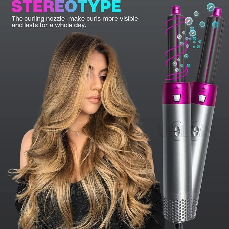 سشوار پنج کاره ایر استایلر مدل tp5+1 دارای پنج ضمیمه برس قابل تعویض است که باعث صاف کردن، فر کردن، ترکیب سشوار با برس های حالت دهنده می شود، می تواند برای طول های مختلف مو مناسب باشد و سبک های مختلفی ایجاد کند.