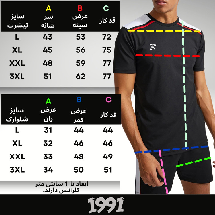 ست تی شرت و شلوارک ورزشی مردانه نوزده نودیک مدل ST1918 BW