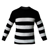پلیور مردانه راه راه سفید مشکی مدل Mahyad