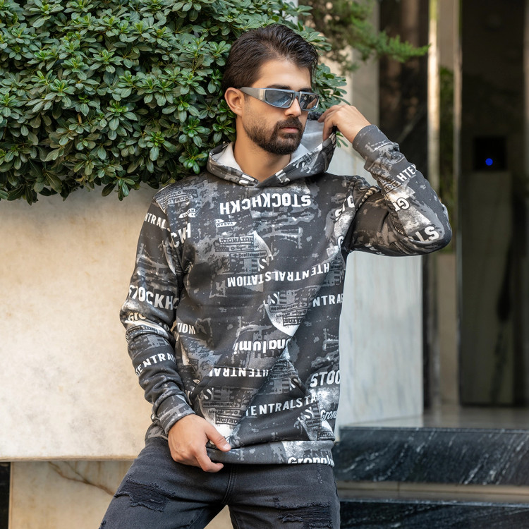 هودی طرحدار مردانه مشکی مدل stock