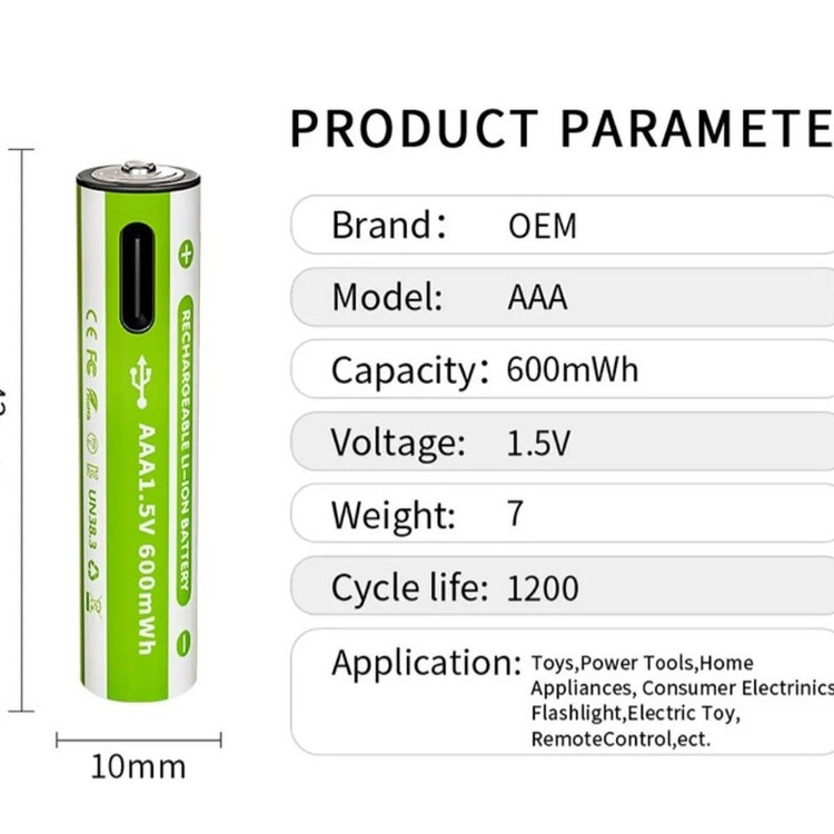 باتریهای دارای پورت USB نسل جدیدی از باتریها هستند که نیاز به شارژر ندارند در حقیقت، مدار شارژکننده در دل باتری تعبیه شده است که با اتصال آن به یک کابل و یا پورت USB عمل شارژ باتری انجام میگیرد. کافیست سر دیگر کابل را به یک آداپتور موبایل، پاوربانک، لپ تاپ و یا حتی به خود گوشی موبایل وصل نمایید تا باتری شما پر شود. این باتریها در اندازههای مختلف (قلمی، نیمقلمی، کتابی و غیره) و انواع پورتها (USB نری، microUSB و USB Type-C مادگی) در بازار موجود هستند که مدل معرفی شده در اینجا، سایز نیم قلمی ( بوده و دارای پورت USB Type-C میباشد.