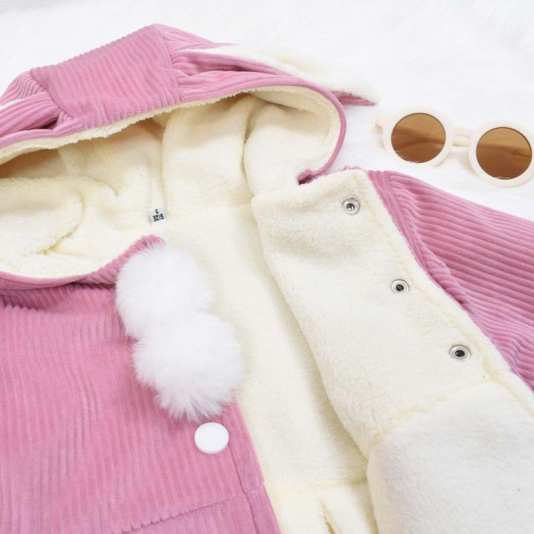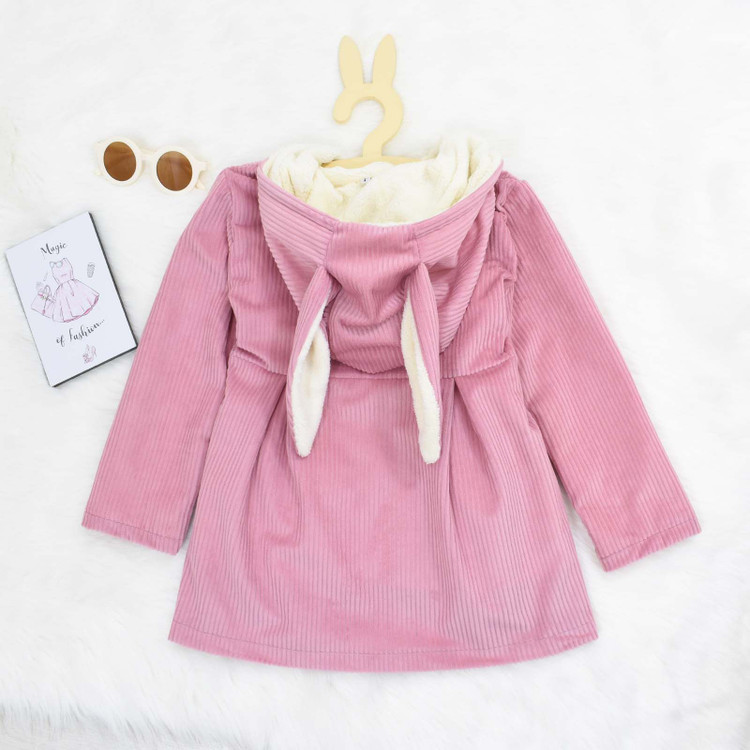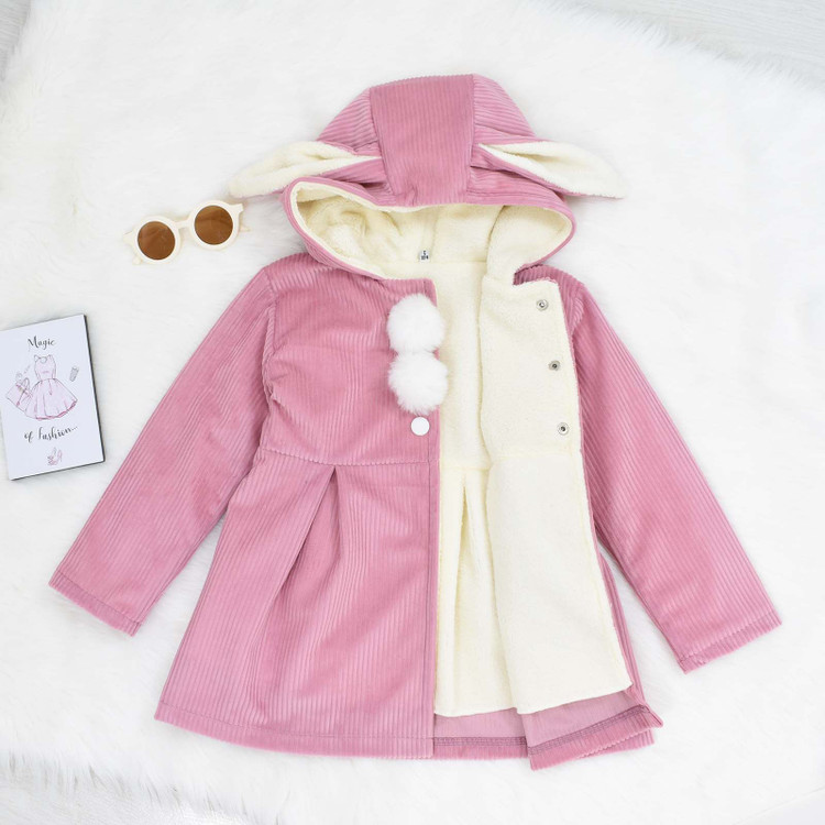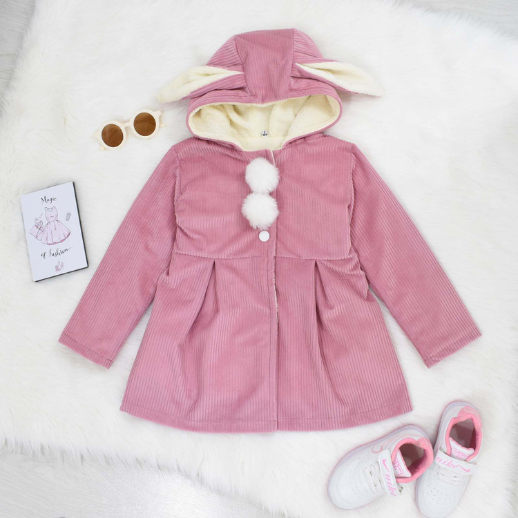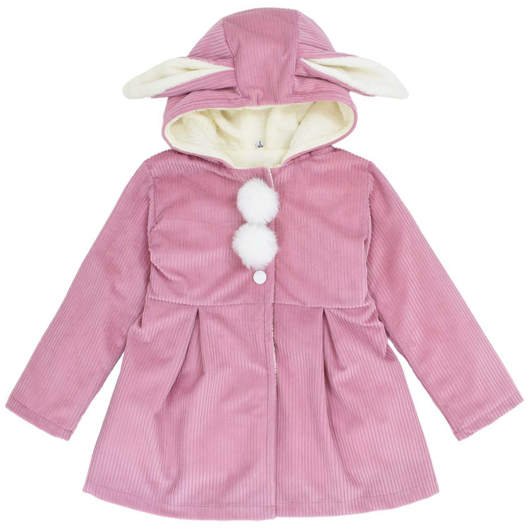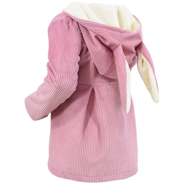 پالتو دخترانه برند دل آویز بافت مخمل کبریتی با طرح خرگوش و آستری خز ضخیم