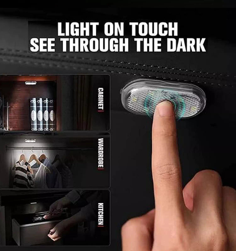 چراغ لمسی یا تاچ لایت دارای 6 عدد ال ای دی با نور سفید و قابل نصب بر قسمت های مختلف خودرو (داشبورد، بدنه درهای کنار، صندلی ها، سقف و غیره ) به صورت چسبی است.