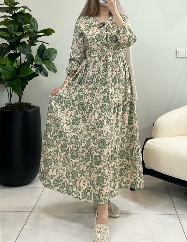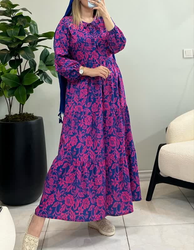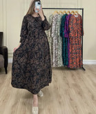 پیراهن فلور فوق العاده سبک و خوش پوش بدون آبرفت جنس کرپ فلور بدون چروکی دور یقه کار بند میخوره دور مچ کار کش میخوره