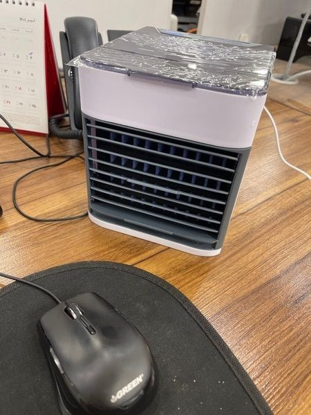 با رسیدن فصل گرما، نیاز به یک خنک کننده در دسترس و قابل حمل بسیار ملموس می شود، به خصوص اگر اهل طبیعت نوردی و کوه نوردی باشید که گرمای خوابیدن در چادر و سایبان اذیتتان کند. محصولی که مشاهده می کنید یک کولر آبی پرتابل مه پاش و قابل حمل USB با وزنی سبک و در حدود 780 گرم می باشد و ابعاد کولر آبی مدل ULTRA AIR COOLER ، 17*15*17 سانتیمتر است. جنس بدنه آن از پلاستیک با کیفیت بدون بو می باشد و در قسمت بالایی این کولر آبی رومیزی مخزن آبی وجود دارد که می توانید در صورت نیاز آن را پر از آب کرده و از هوای خنک تری برخوردار شوید. نگران نباشید این کولر بدون آب هم کار می کند و در صورت نبود آب در مخزنش نمی سوزد. فیلترهای به کار رفته در این کولر، از مواد اسفنجی ساخته شده که از قابلیت شست وشو برخوردار هستند و این امکان را به شما میدهند تا هر زمان بخواهید آنها را شسته و تمیز کرده و بازدهی کولر خود را افزایش دهید. این فیلتر ها با خیس شدنشان و عبور هوای فن فضا را خنک تر می کنند دقیقا کارکردی شبیه به پوشال های کولر های آبی خانه تان با این تفاوت که برق مصرفی این کولر در حد شارژ کردن گوشی تان می باشد. کولر آبی رومیزی کوچک برای خنک کردن محیط از سیستم مه پاشی استفاده کرده و از مواد مضری مثل فرئون استفاده نمی کند بنابراین نگران آلودگی محیط نباشید. این کولر با پر بودن مخزن آب خود قادر به 10 ساعت کار می باشد و همچنین با اتصال کابل USB اش به پاور بانکتان می توانید در هر مکانی از آن استفاده نمایید. به دلیل وجود چراغ LED آن، در تاریکی و شب هم می توانید از آن به راحتی استفاده نمایید. ولتاژ مصرفی این محصول DC: 5V می باشد و با شدت جریان 1.5 تا 2 آمپر کار میکند. توجه امکان تنظیم دریچه ندارد. (فاقد باتری داخلی بوده و باید به منبع برق (لپتاپ/پاوربانک/یو.اس.بی) وصل باشد). مکانیسم خنک کنندگی تبخیری بوده و از یک فن کم مصرف و برگه های سلولوزی بهره می برد که از این نظر عملکردی مشابه با کولرهای سلولزی معمول اما در ابعادی کوچک و قابل حمل دارد. تنظیمات دستگاه شامل تنظیم شدت باد در 3 درجه و رنگ قابل انتخاب برای نور ملایم دستگاه است. شارژدهی با شارژ کامل و شدت باد متوسط حدود 7.5 ساعت است. گنجایش مخزن آب حدود 700 میلی لیتر است. میزان صدای دستگاه باتوجه به بهینه فن، هنگام خواب آزاردهنده نیست. دستگاه قدرت چرخش باد و پخش ندارد و صرفاً بصورت مستقیم پرتاب باد دارد و از این نظر برای استفاده روی میز کار، چادرهای کوچک و فضاهای محدود مناسب است؛ همچنین در پاییز و زمستان با خشک شدن هوا، می توان برای مرطوب یا خنک نگه داشتن محیط گیاهان خانگی حساس از آن استفاده کرد. اگر کلا قصد استفاده از قابلیت خنک کنندگی ندارید، می توان در مخزن آن اکالیپتوس و مواد معطر ریخت تا فضا را خوشبو کند.