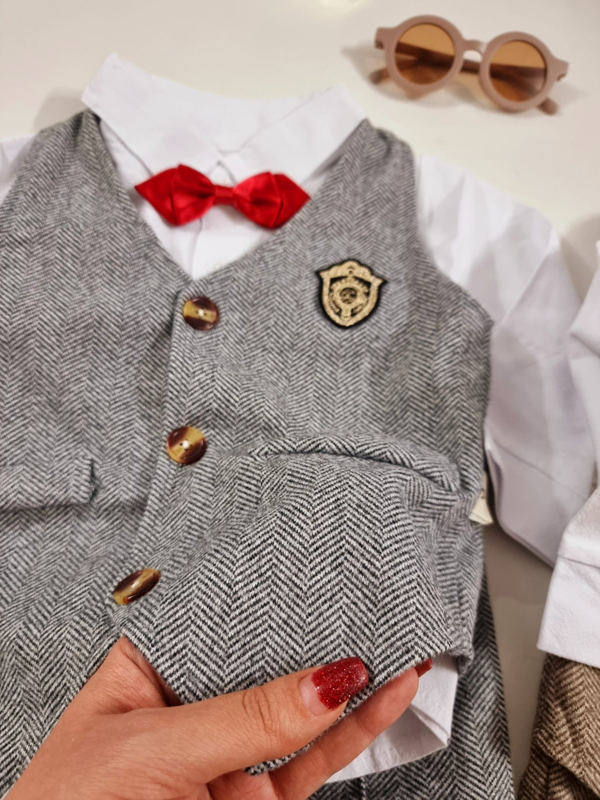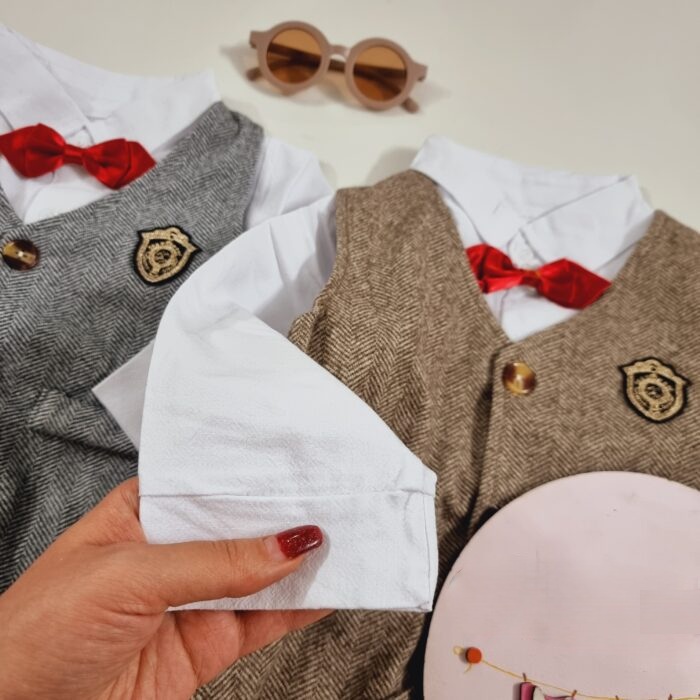 لطفا قبل از ثبت سفارش، سانت را با نرمالترین لباس فرزند خود چک کنید و یک سانت خطا در اندازه گیری قرار دهید. رندوم پاپیون ندارد.