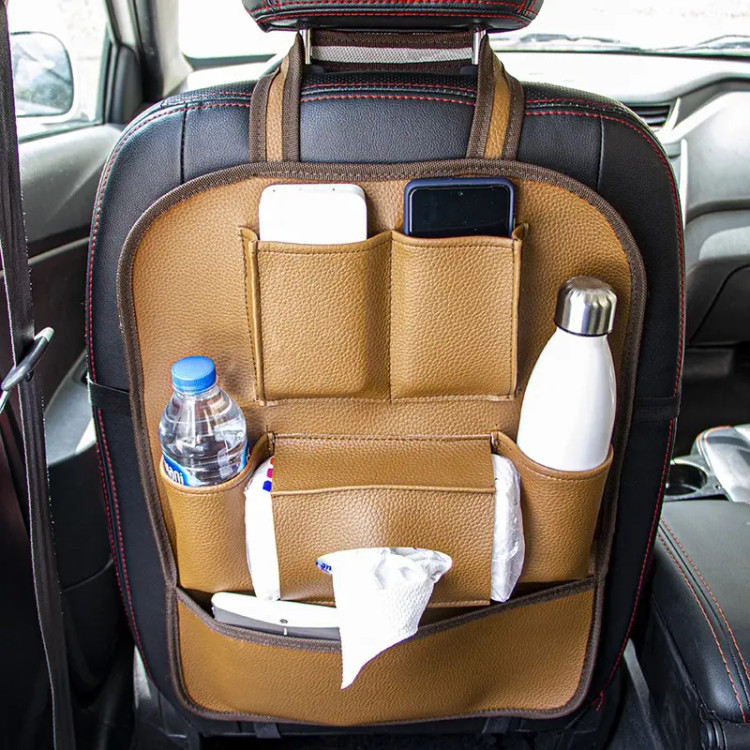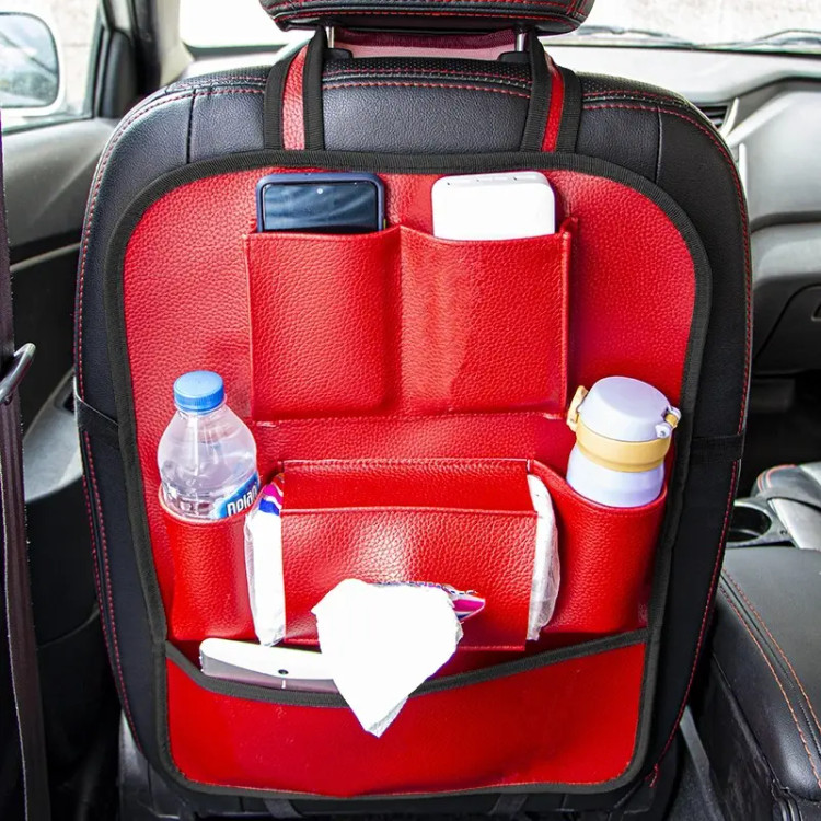 کیف پشت صندلی چرم دارای 6 محفظه مجزا می باشد که با دوخت صنعتی و حرفه ای قابلیت نگهداری وسایل شما را دارد