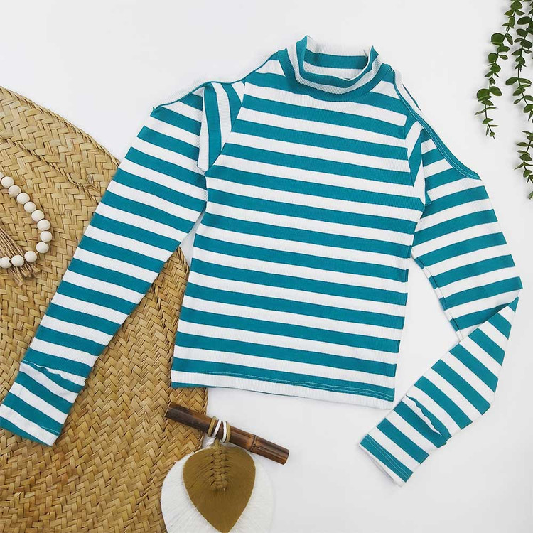 کراپ کبریتی راه راه سرشانه باز(فری سایز) کد 8680