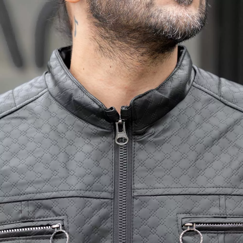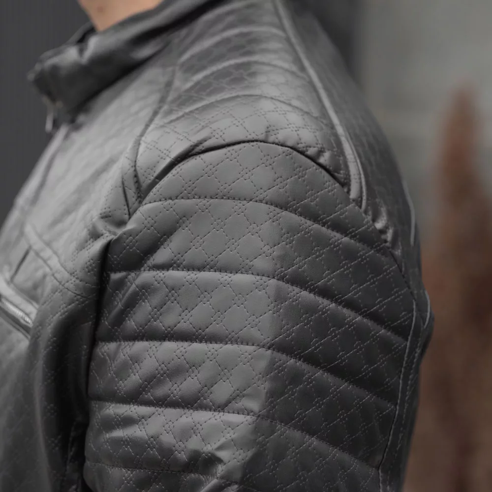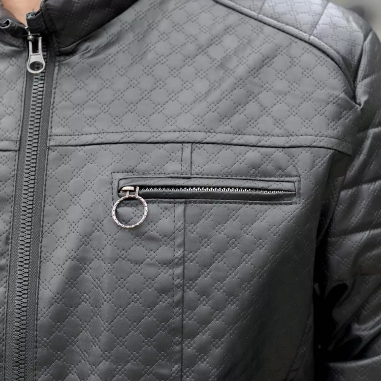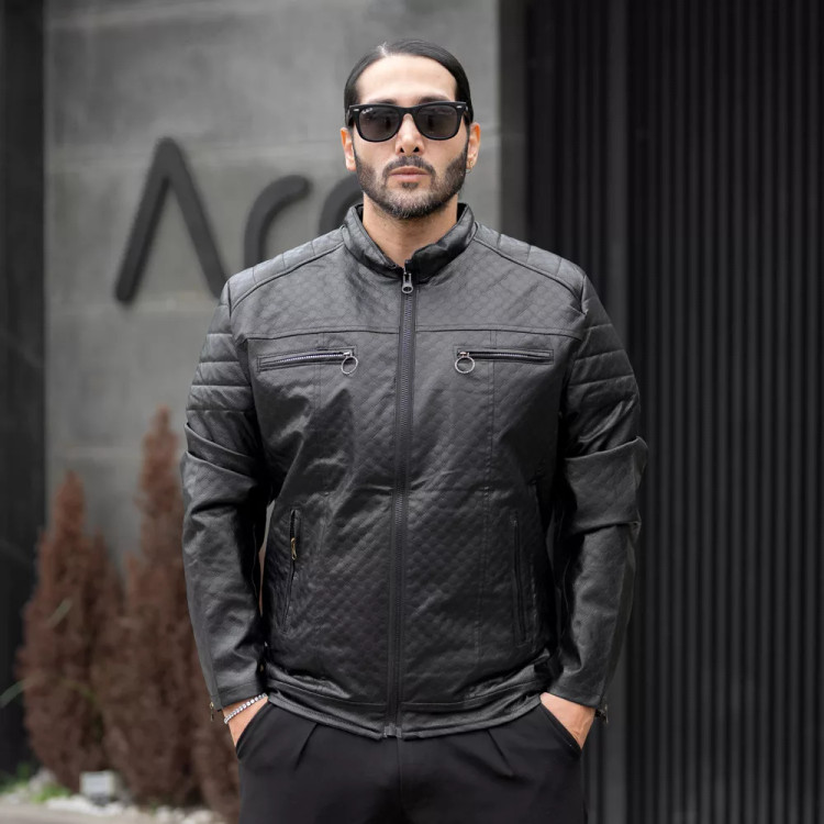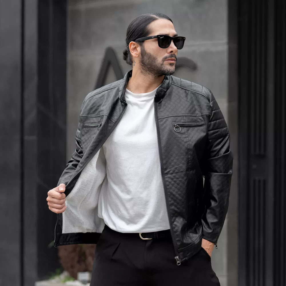 کاپشن چرم باکسی مردانه مشکی کد 27714