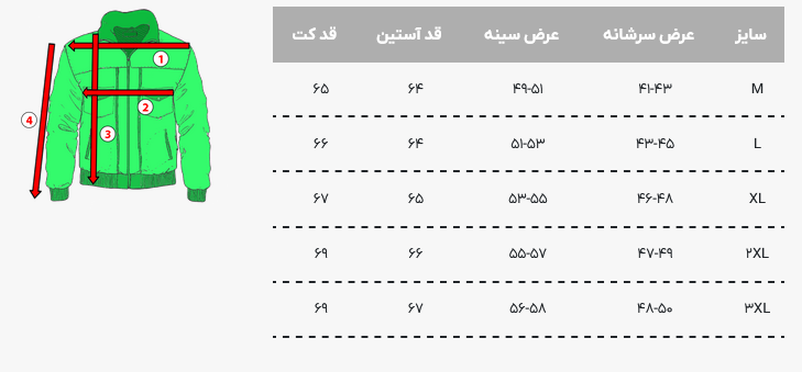 - تعداد جیب : دو جیب در جلوی لباس, دو جیب روی سینه