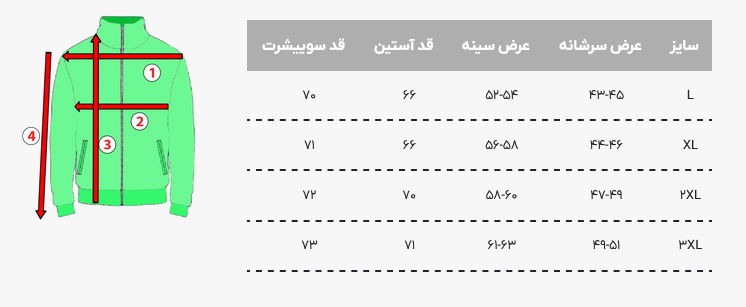- تعداد جیب : دو جیب در جلوی لباس, یک جیب مخفی داخل