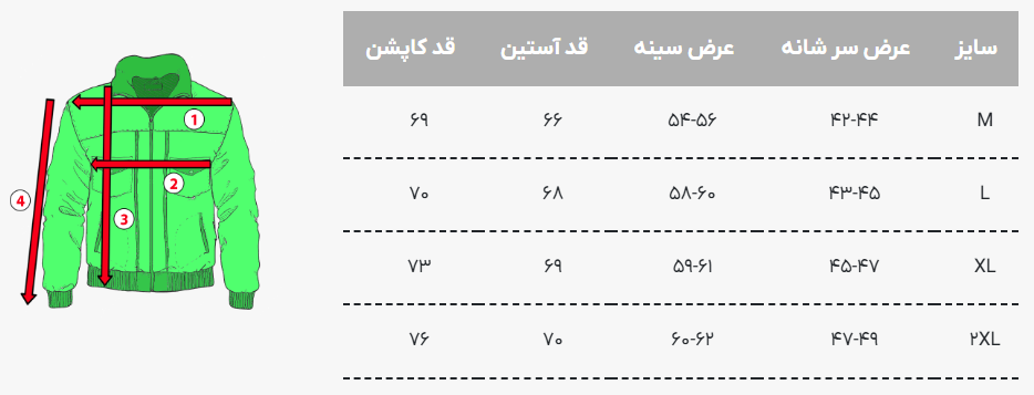 - سایزبندی کاپشن و پالتو : M, L, XL, 2XL