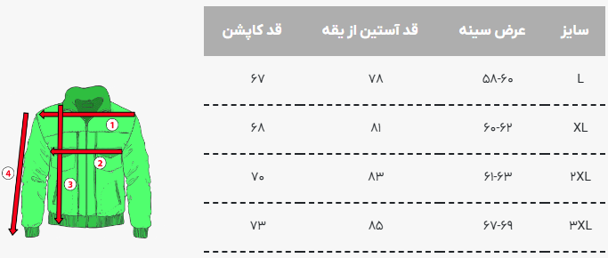 - سایزبندی کاپشن : L, XL, 2XL, 3XL