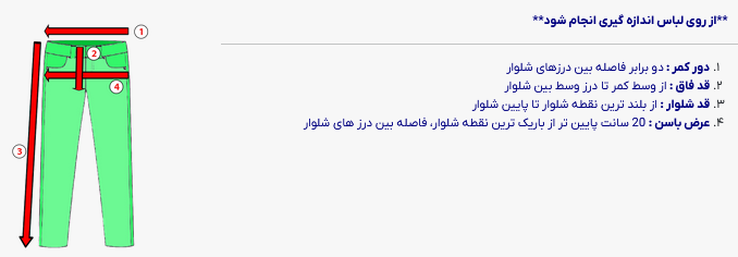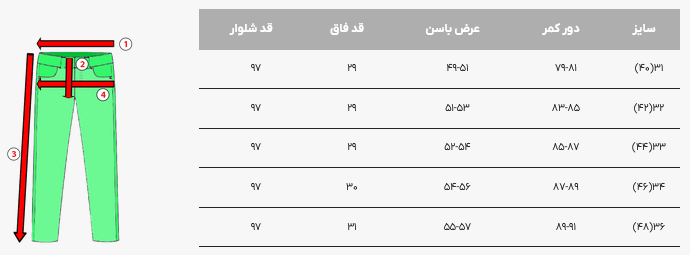 - تعداد جیب : دو جیب در پشت شلوار, دو جیب در جلوی شلوار