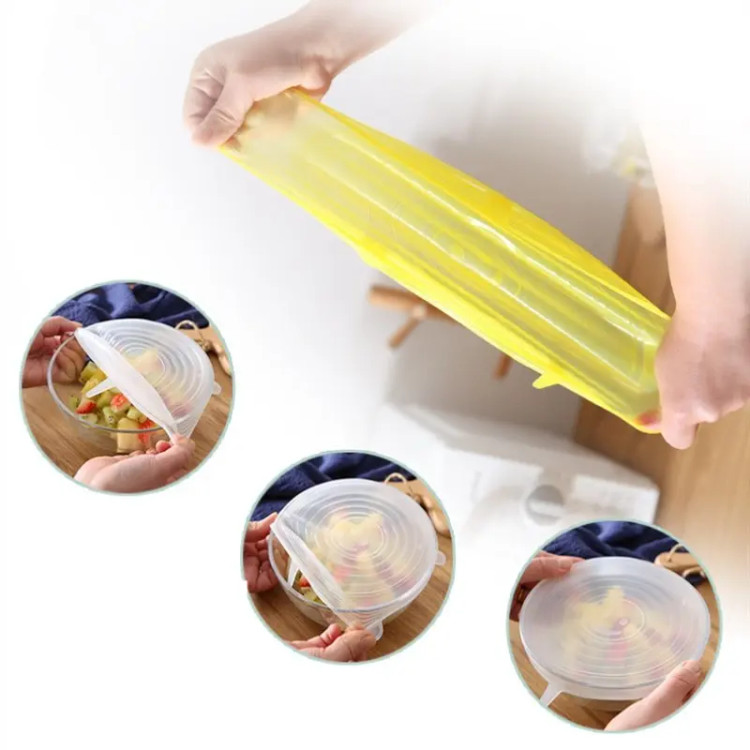 6 عدد درپوش سیلیکونی ساخته شده از سیلیکون با کیفیت جلوگیری از بین رفتن عطر غذا و مواد خوراکی قابل شستشو در ماشین ظرفشویی قابلیت اسفاده در ماکروویو قابلیت آنتی باکتریل