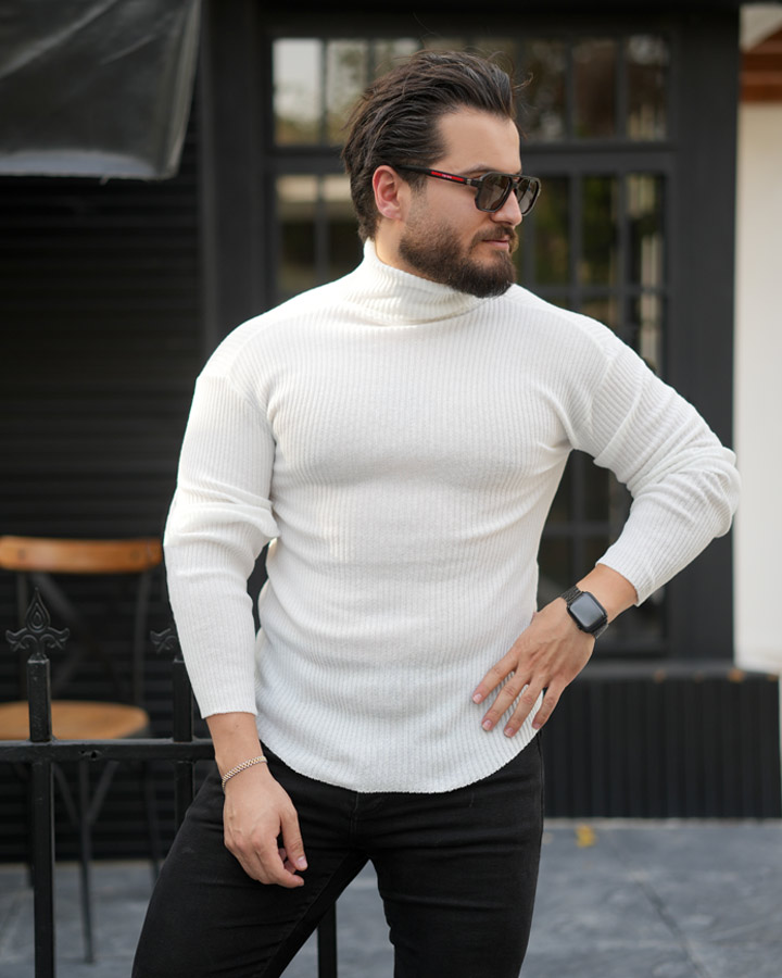 بافت مردانه یقه اسکی کشی ( سفید) کد SAB6428