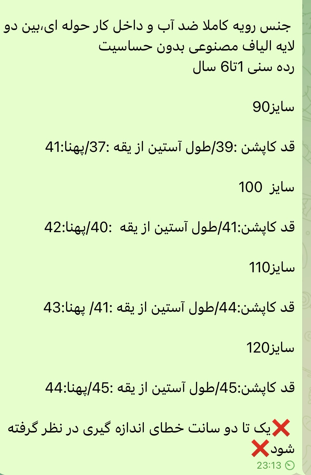 - سایزبندی ۹۰ الی ۱۲۰