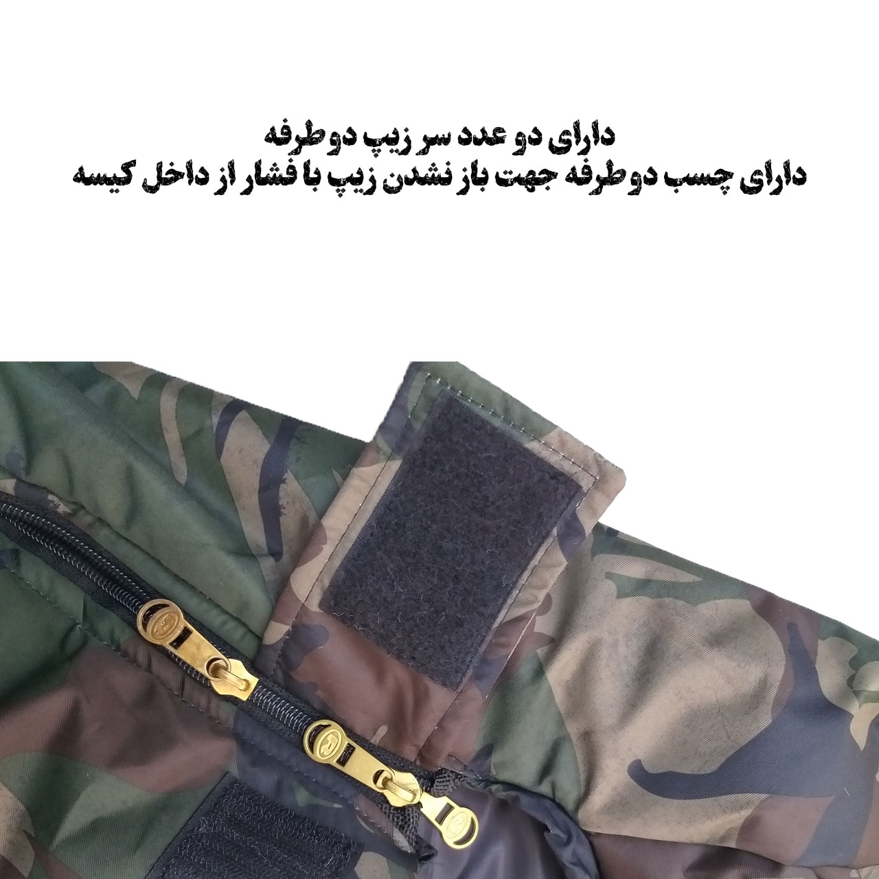 - نحوه بسته شدن کیسه خواب: زیپ دو طرف