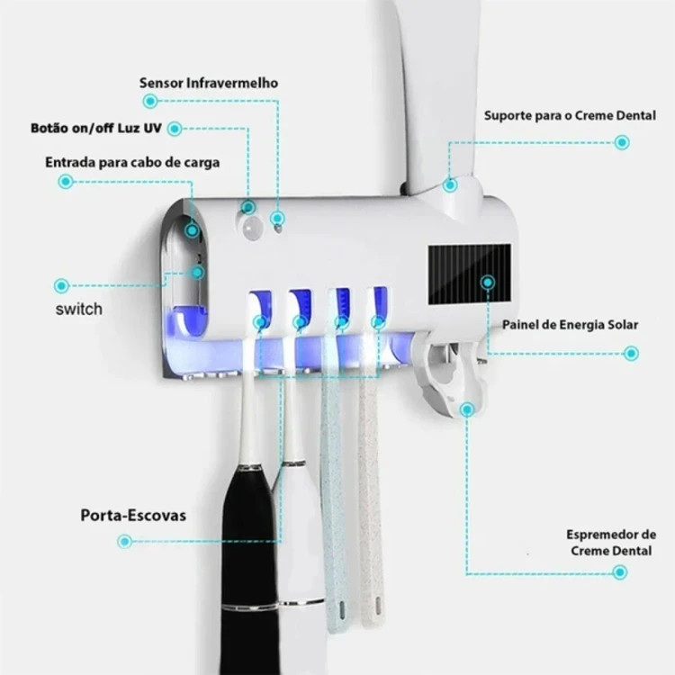 جا مسواکی استریل کننده مسواک بهترین وسیله برای رعایت بهداشت دهان و دندان و جلوگیری از بروز و انتقال بیماری های ویروسی و میکروبی است. این دستگاه به وسیله اشعه ماورابنفش UV مسواک ها و خمیر دندان شما را بدون دخالت مواد ضد عفونی کننده ضد عفونی میکند. جا مسواکی و ضد عفونی کننده مسواک با بهره گیری از تکنولوژی به روز ضد عفونی کنندگی ویروس ها و میکروب به جا مانده بر سطوح آنها را نابود می کند. جا مسواکی استریل کننده مسواک دارای پمپ خمیر دندان بدون استفاده از دست جهت رعایت کامل بهداشت است.