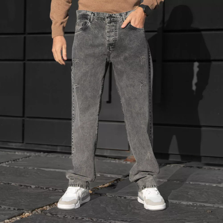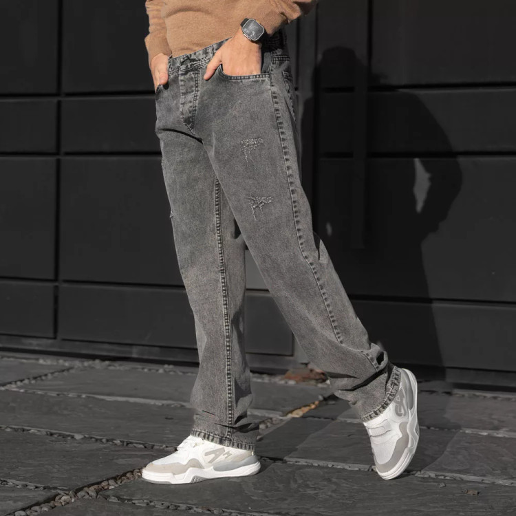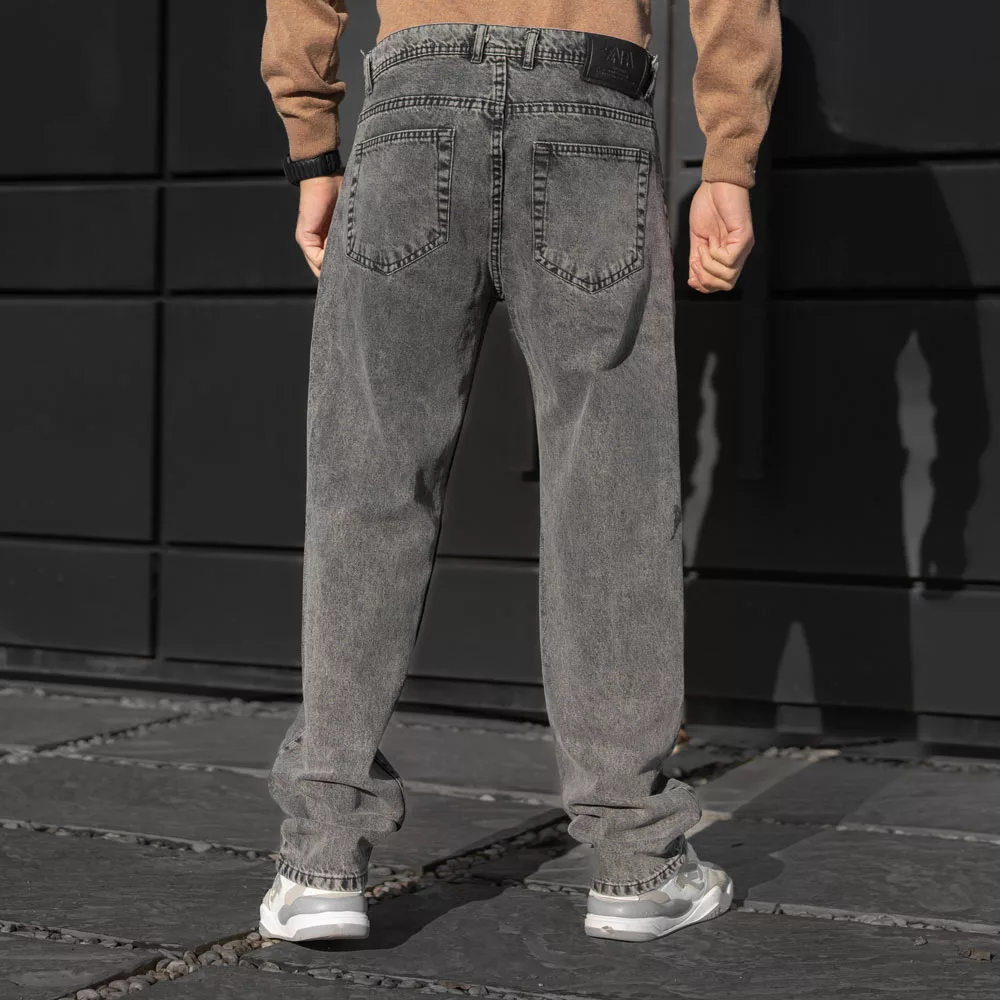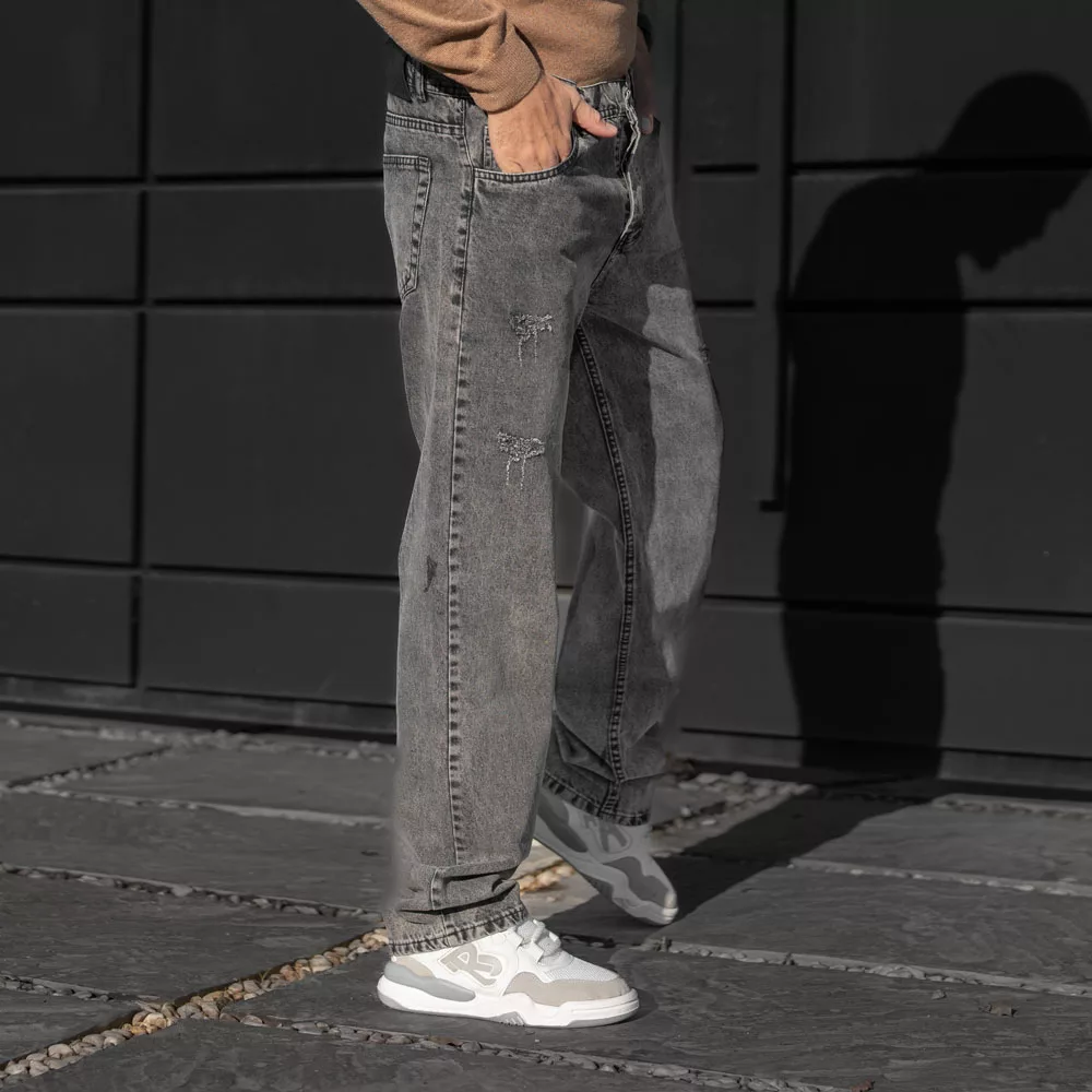 شلوار جین باکسی مردانه نیم بگ خاکستری کد 28443