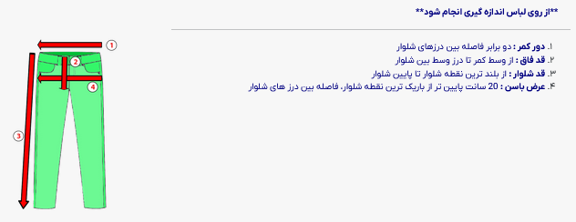 - تعداد جیب : دو جیب در پشت شلوار, دو جیب در جلوی شلوار