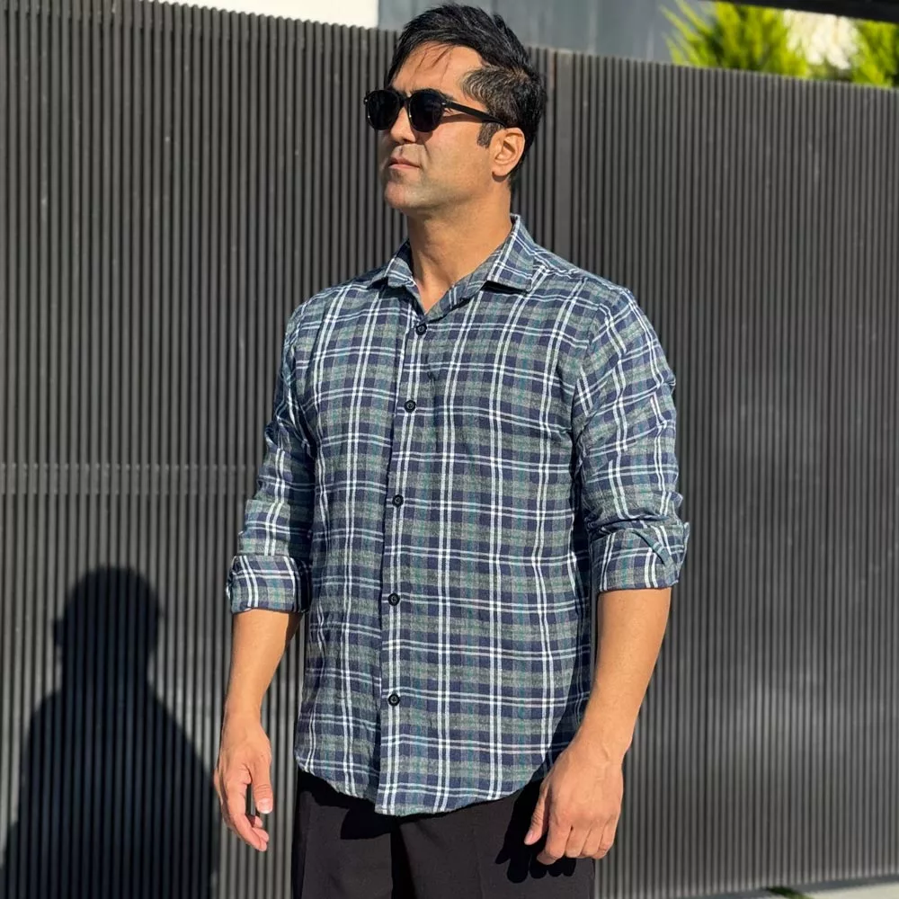 پیراهن مردانه پشمی چهار خونه باکسی کد 28451