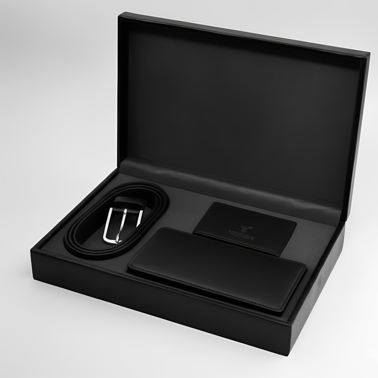 پکیج هدیه سازمانی اکونومی (کیف پول،کمربند و جاکارتی در هاردباکس) ـ مشکی ME