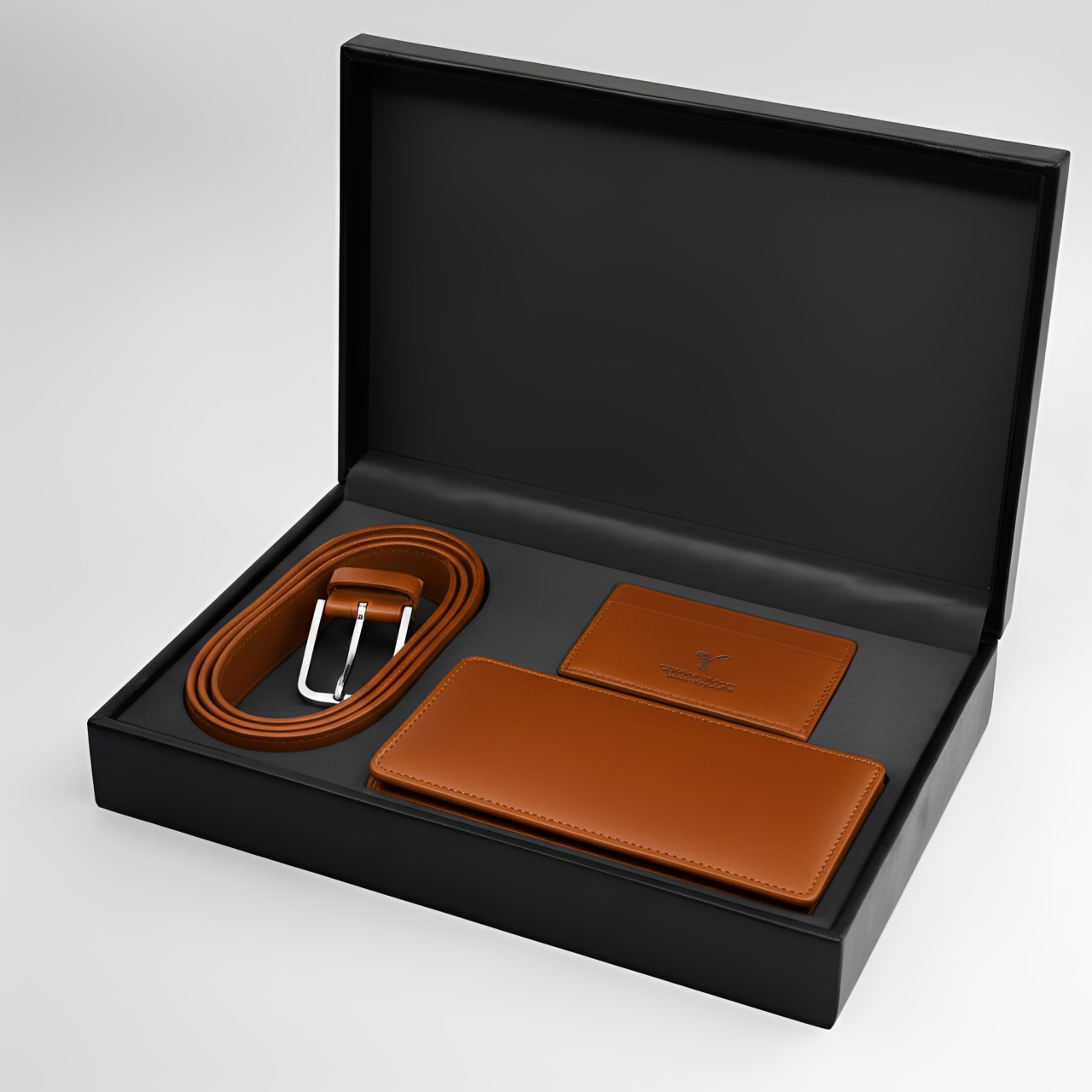 شامل کیف پول چرمی، کمربند چرمی و جاکارتی