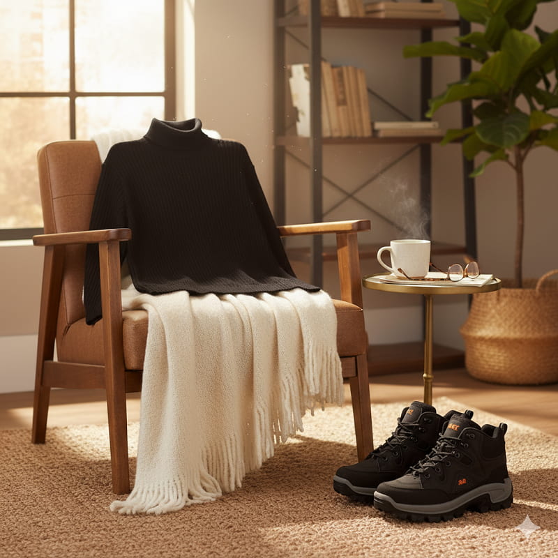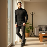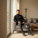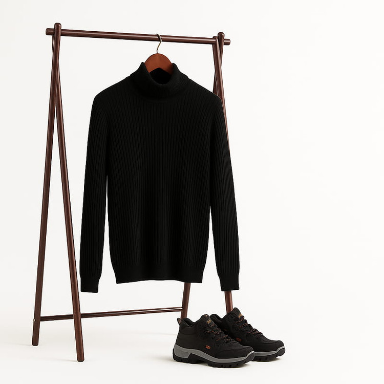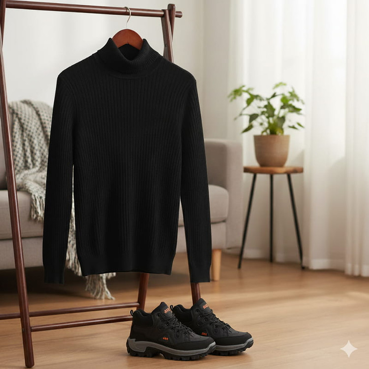 پکیج پلیور بافت یقه اسکی مدل Ersan و کفش ساقدار مردانه مشکی مدل JAX