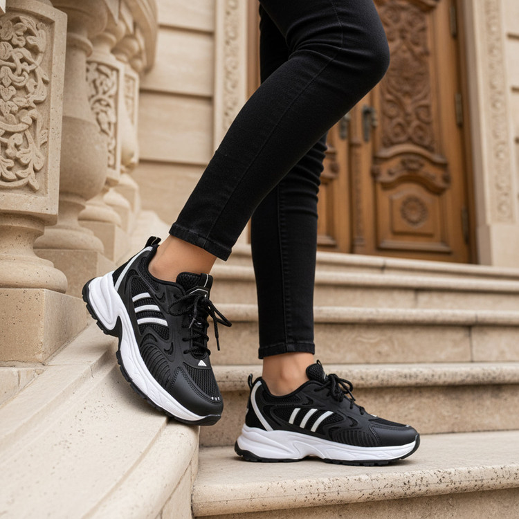 کفش اسپرت زنانه مشکی سفید Adidas مدل 1995