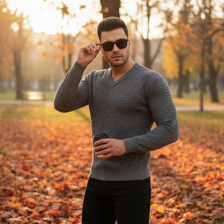 بافت مردانه خاکستری یقه هفت Seria مدل 1951