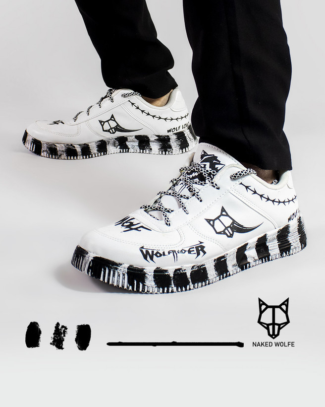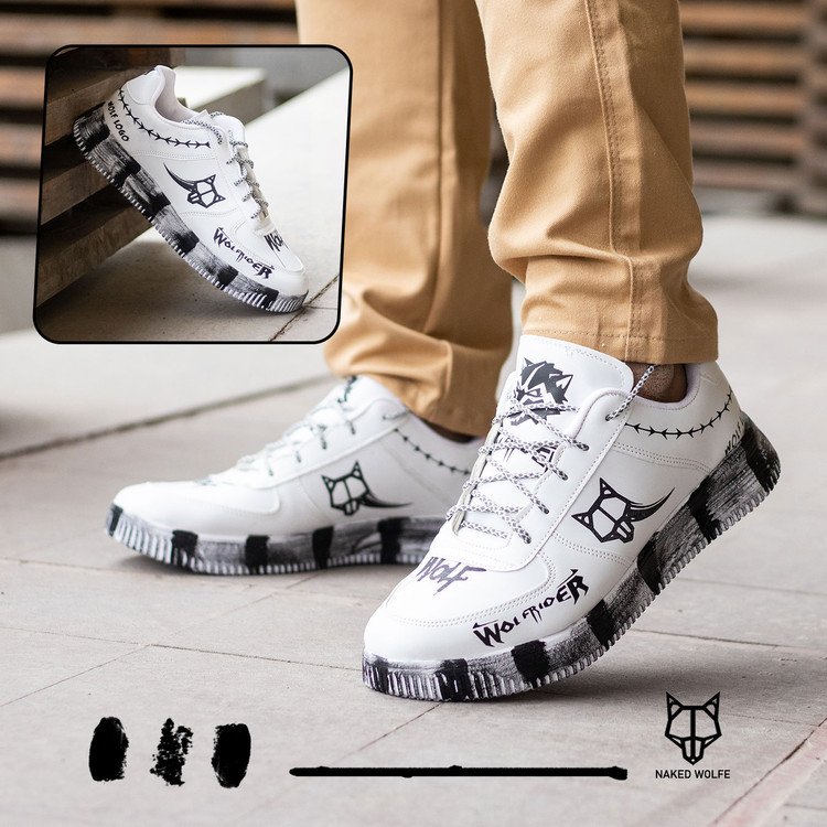 کفش اسپرت مردانه سفید مشکی Wolf مدل 1486
