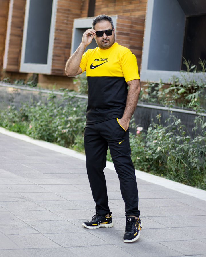 ست تیشرت شلوار مشکی زرد آستین کوتاه نایک مدل 1916