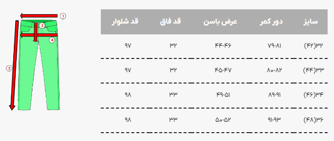 - تعداد جیب : جیب پشت نما میباشد, دو جیب در جلوی شلوار