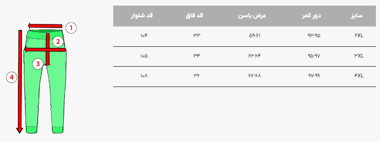 - تعداد جیب : دو جیب در جلوی شلوار, یک جیب در پشت شلوار