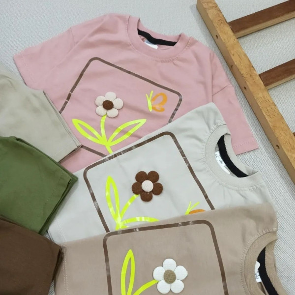 ست بلوز شلوارک دخترانه طرح گل بیبی کد: 4594