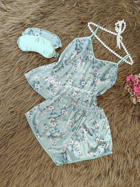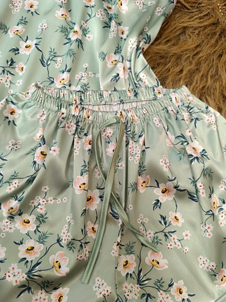 ست تاپ شلوارک زنانه سبز گلدار نیلیا کد: 383