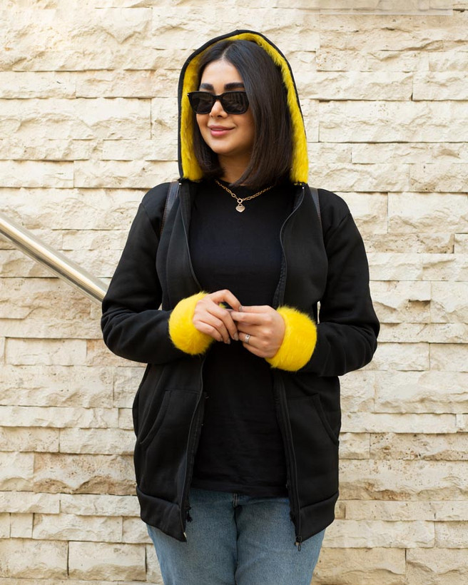 سویشرت زنانه کلاه خز ARZHAN (زرد)
